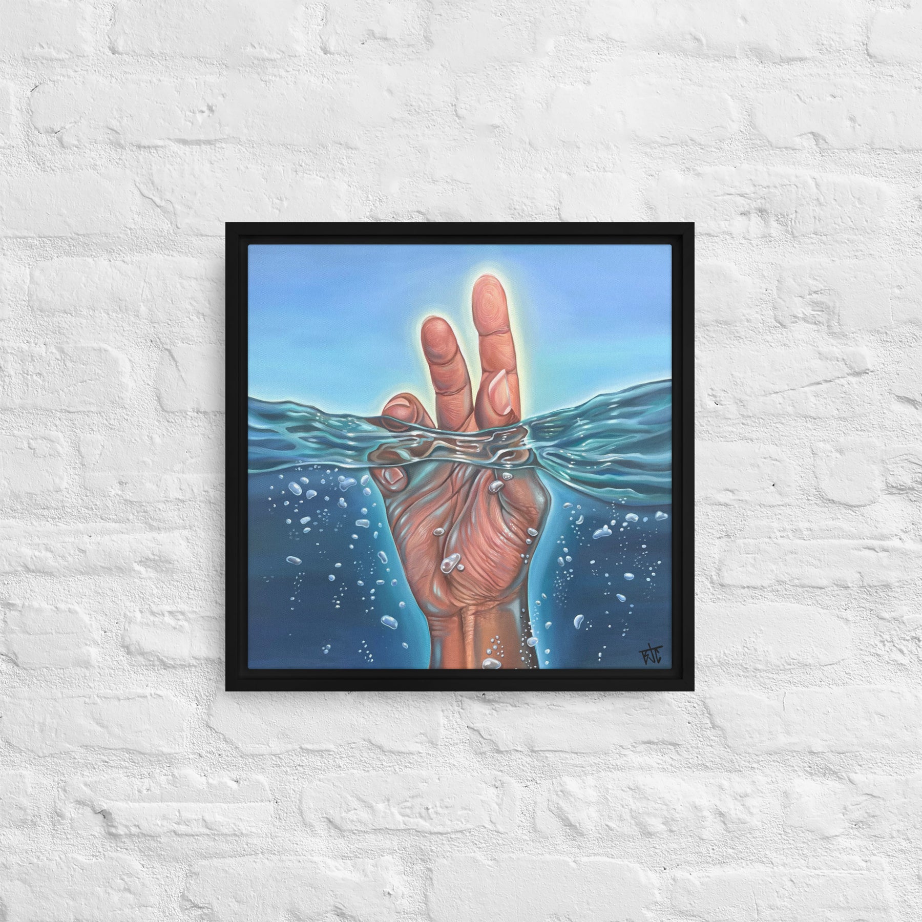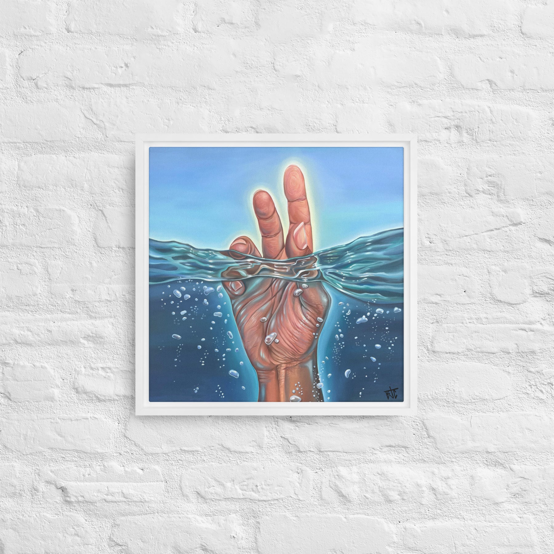 - The framed canvases with brown and black frames have a black inside around the canvas, and the canvases with white frames have a white inside around the canvas.