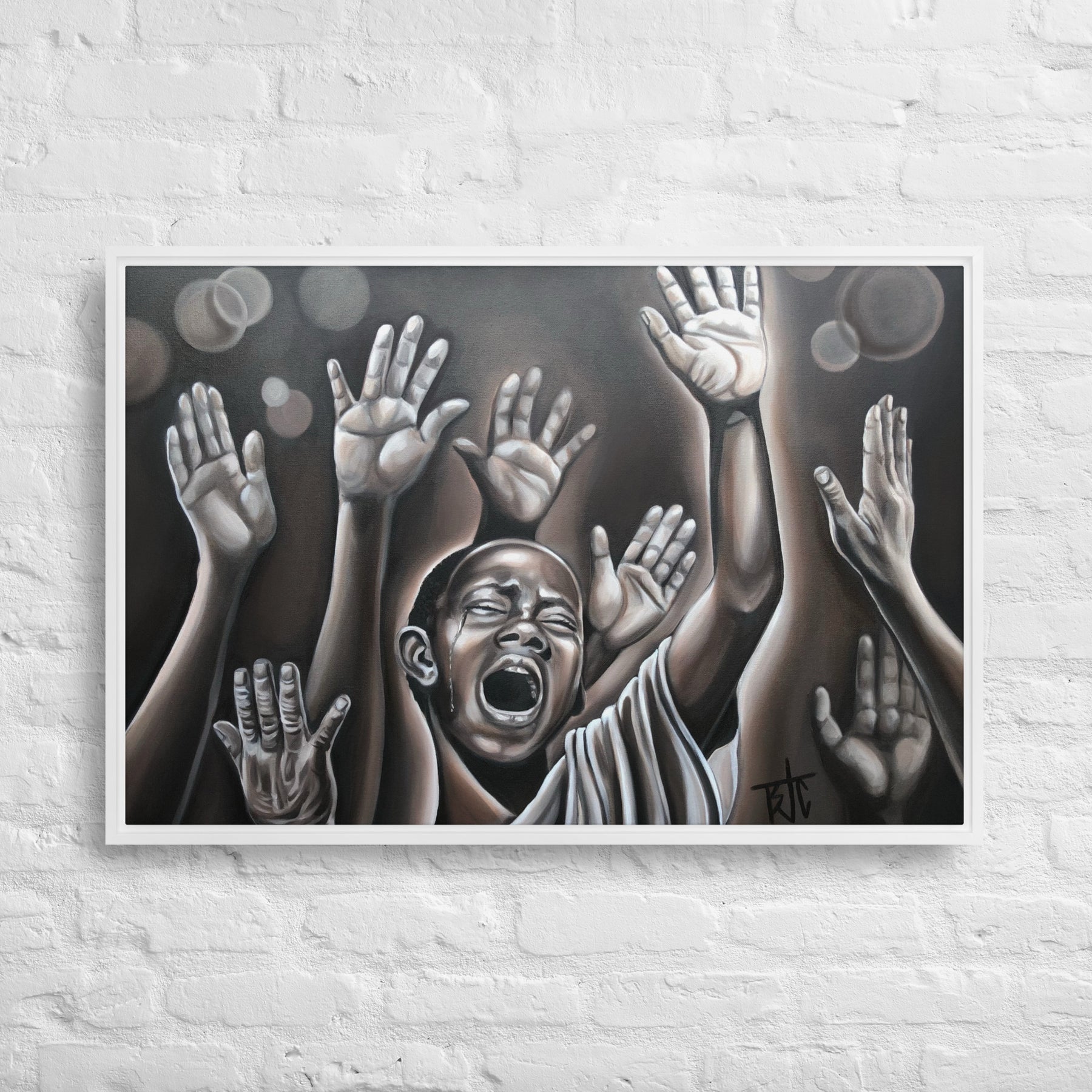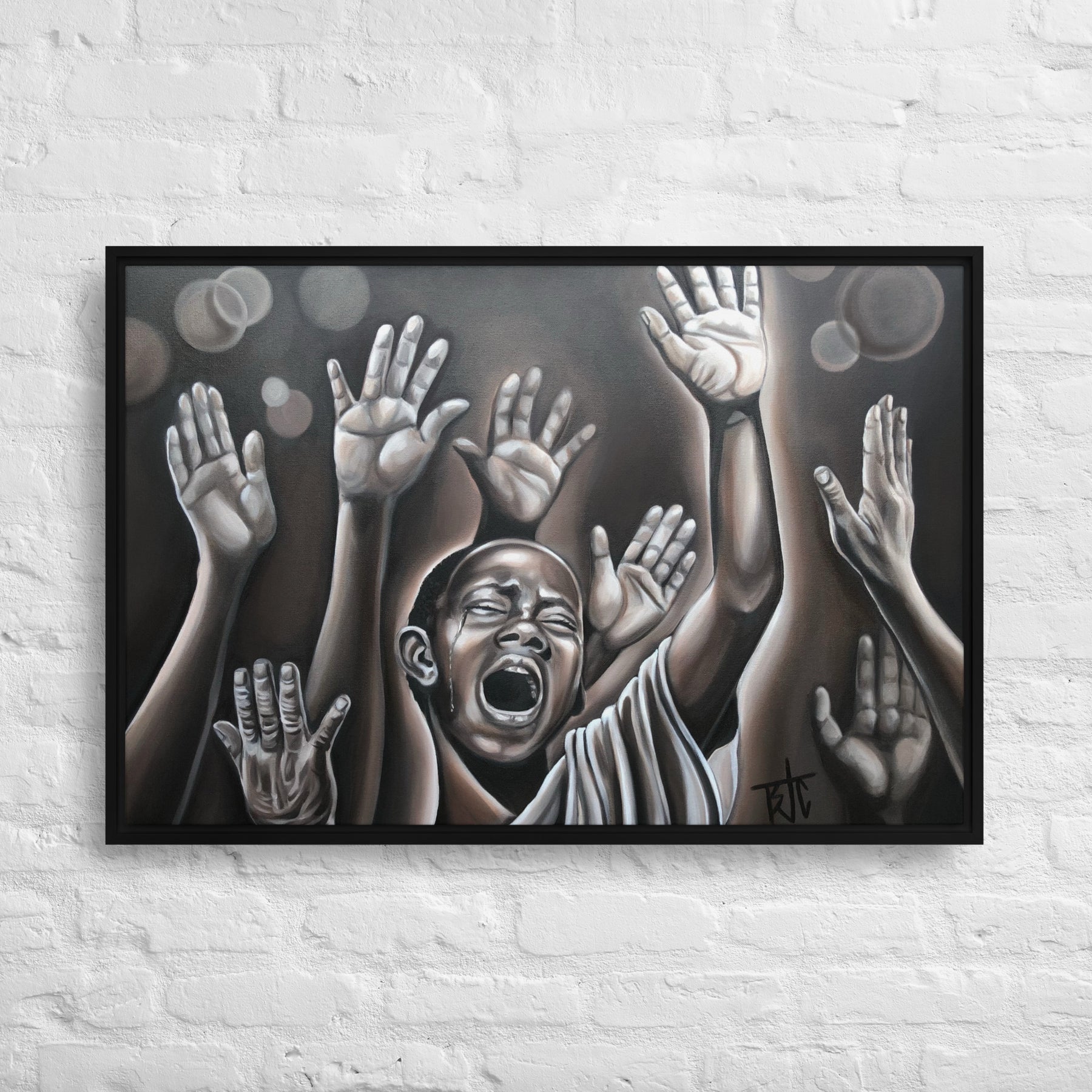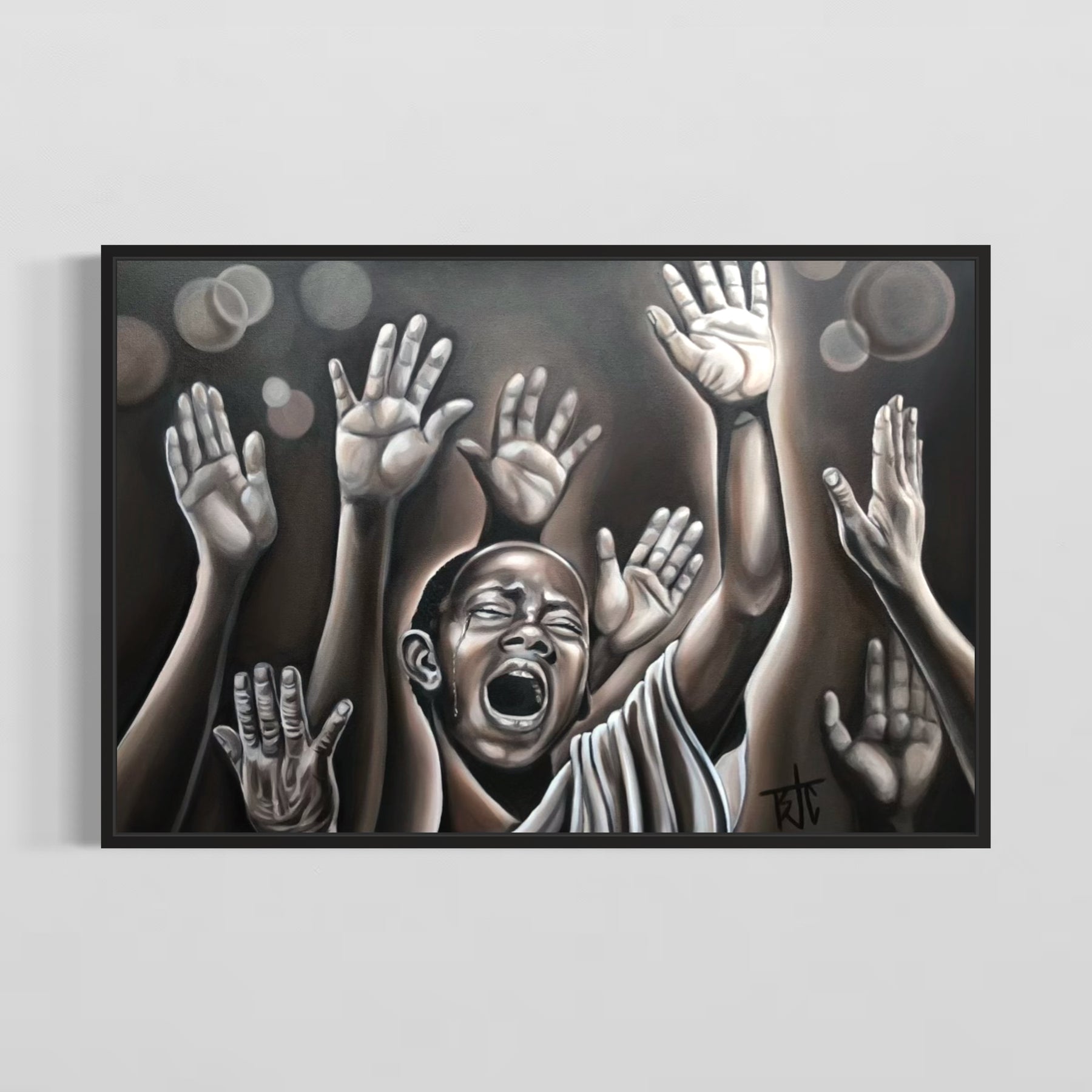 A powerful depiction of uplifted hands in monochrome. Symbolizing fellowship, worship & praise.