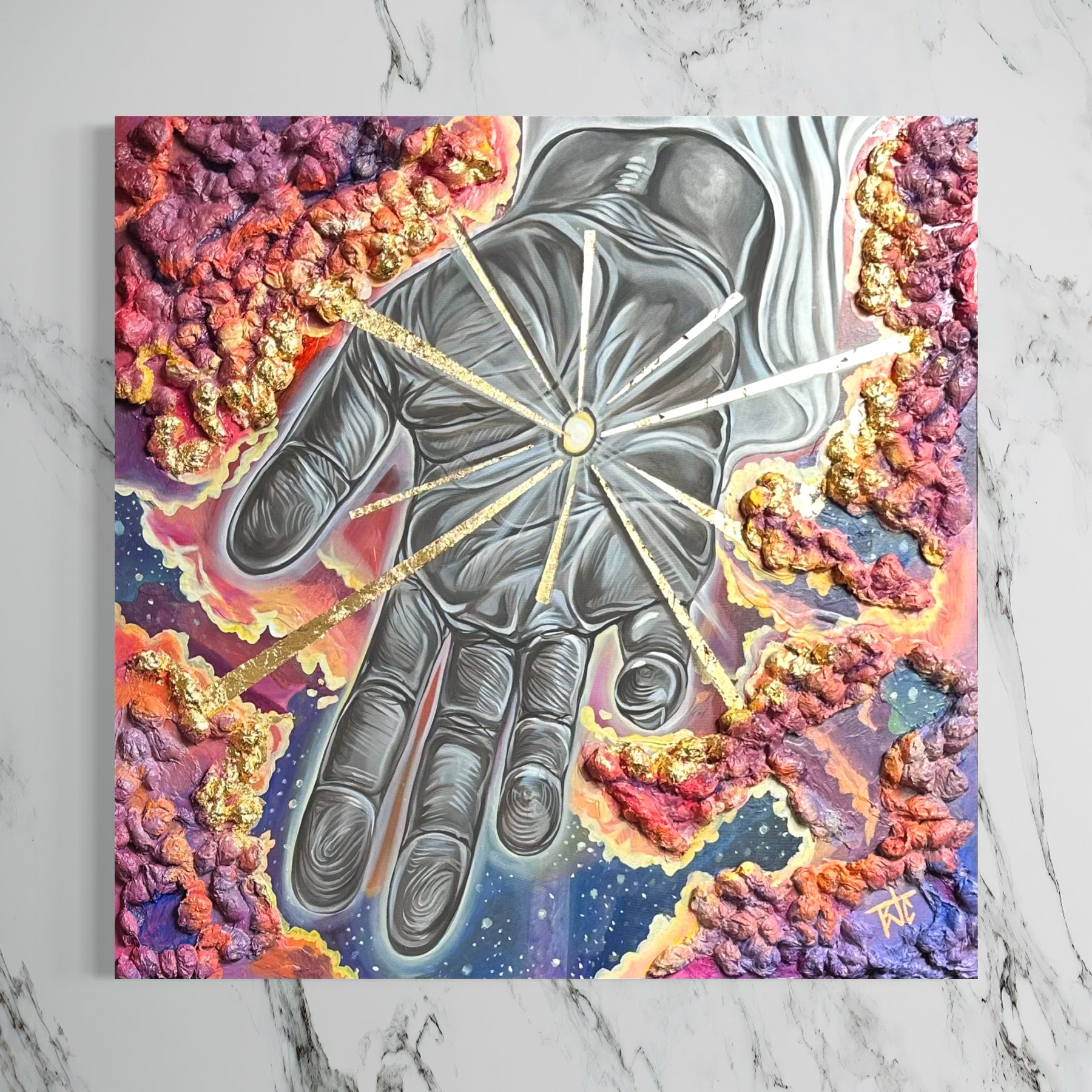 Mixed Media: Master's Touch Acrylic, Master’s Touch Oil, Gessoed Cotton & Gold Leaf.